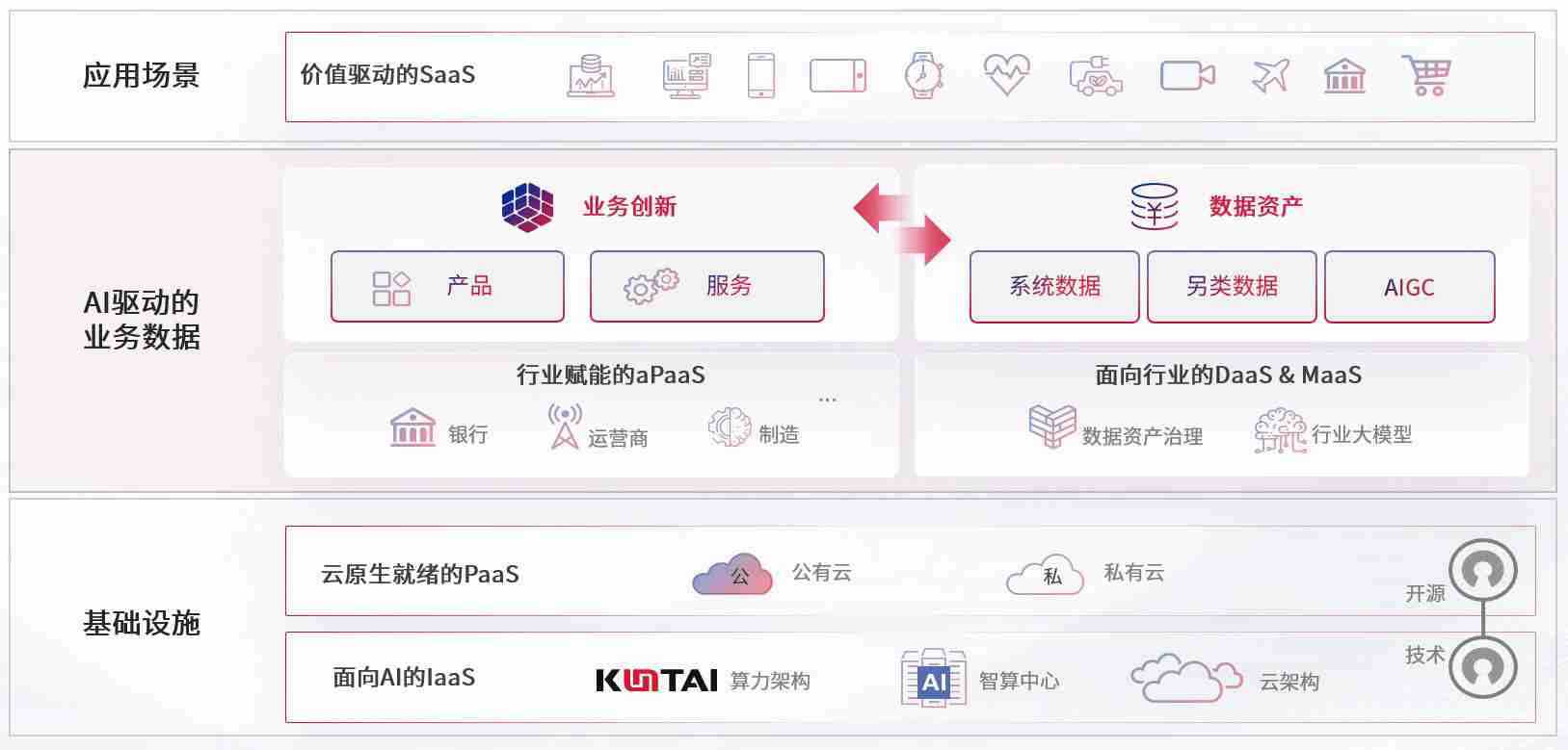 数字时代,,围绕企业数字化转型的关键要素,,,PA旗舰厅数码开创性的提出数云融合战略和技术体系框架,,着力在云原生、、数字原生、、、AI原生和信创产业上架构产品和服务能力,,,为处在不同数字化转型阶段的快消零售、、、汽车、、、、金融、、医疗、、、、政企、、、、教育、、运营商等行业客户提供泛在的敏捷IT能力和融合的数据驱动能力,,构建跨界融合创新的数字业务场景和新业务模式,,,,助力企业级客户建立面向未来的核心能力和竞争优势,,,,全面推动社会的数字化、、、智能化转型升级。。。